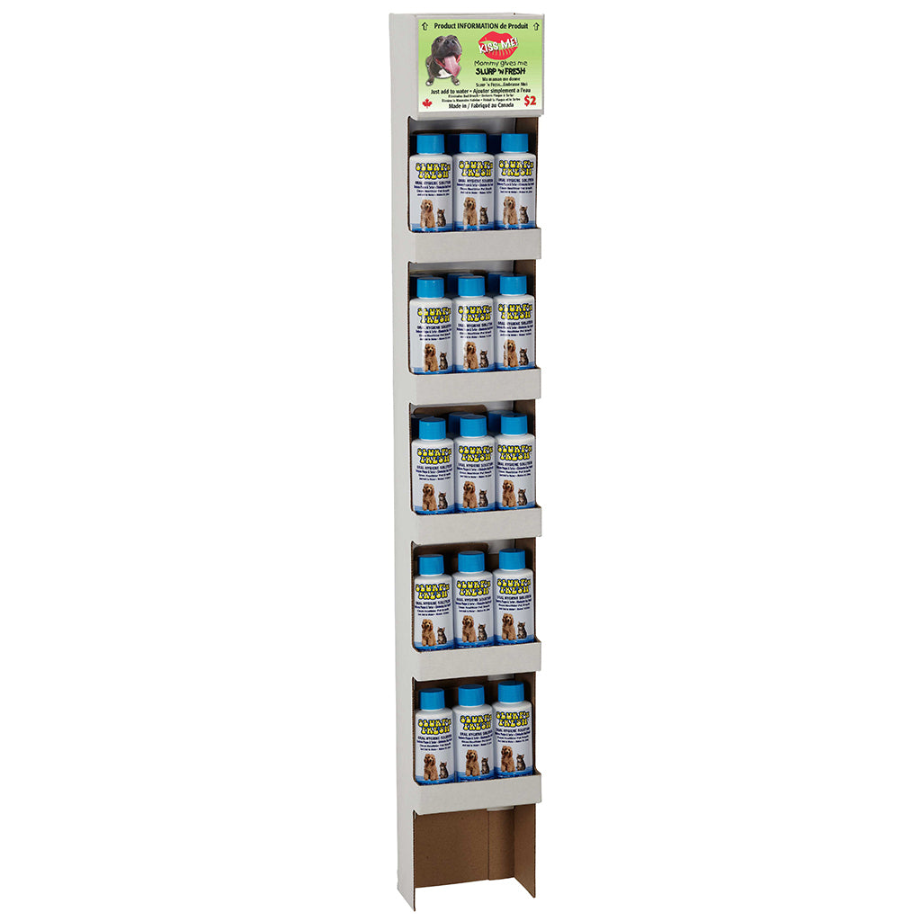 Slurp'n Fresh uses a specialized blend of natural plant extracts to eliminate odor producing compounds which cause bad pet breath. These same compounds are commonly associated with tooth decay and gum disease. Additional Information: Easy to use, just add to water Fast acting, results in 24 hours Eliminates bad breath Reduces plaque and tartar Great for shared drinking bowls No animal testing No artificial colours, flavours, or alcohols Made in Canada Directions: Shake before each use Do not use if seal is broken Use only as directed Do not store in direct sunlight Once opened, use within 120 days Overuse will not provide better or faster results Allow 1 day for results Add 1 capful for every 700 mL (24 ounces) of water Ingredients: Purified filtered water, yucca schidigera, natural mint oil, vegetable glycerin, potassium sorbate (preservative). Contains no dyes, alcohol or artificial flavours.