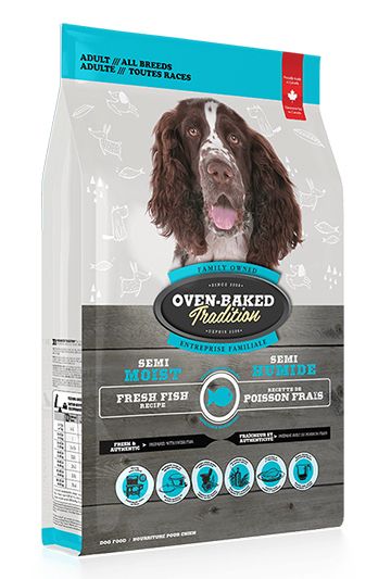 Our semi-moist food for adult dogs of all breeds is prepared with fresh fish.